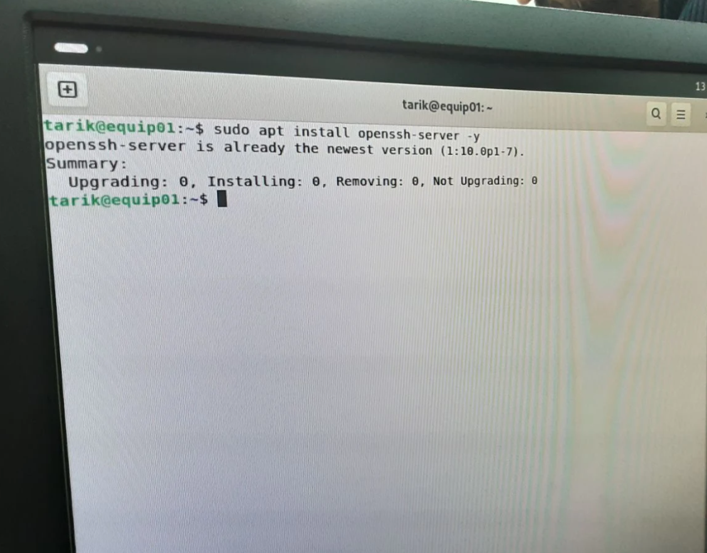 Per assegurar que el servei OpenSSH Server estigui instal·lat a l’última versió abans de procedir amb la configuració de seguretat, he executat novament la comanda sudo apt install openssh-server -y. Com indica la sortida, el paquet ja estava a la versió més recent, confirmant la seva correcta instal·lació i preparant l’equip per al següent pas de configuració, que és restringir l’accés a l’usuari root.