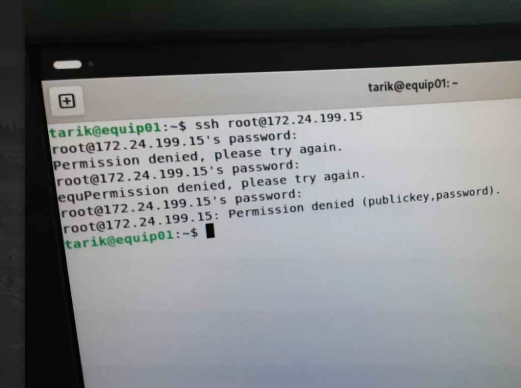 Després de confirmar el bloqueig de root, he provat la connexió remota amb un usuari nominal (en aquest cas, tarik), mitjançant la comanda ssh tarik@IPdelServidor. L’intent ha estat reeixit: s’ha sol·licitat la contrasenya i, un cop acceptada, s’ha establert l’accés remot amb èxit. Això demostra que l’accés SSH funciona correctament per als usuaris nominals, complint l’altre requisit de la rúbrica.