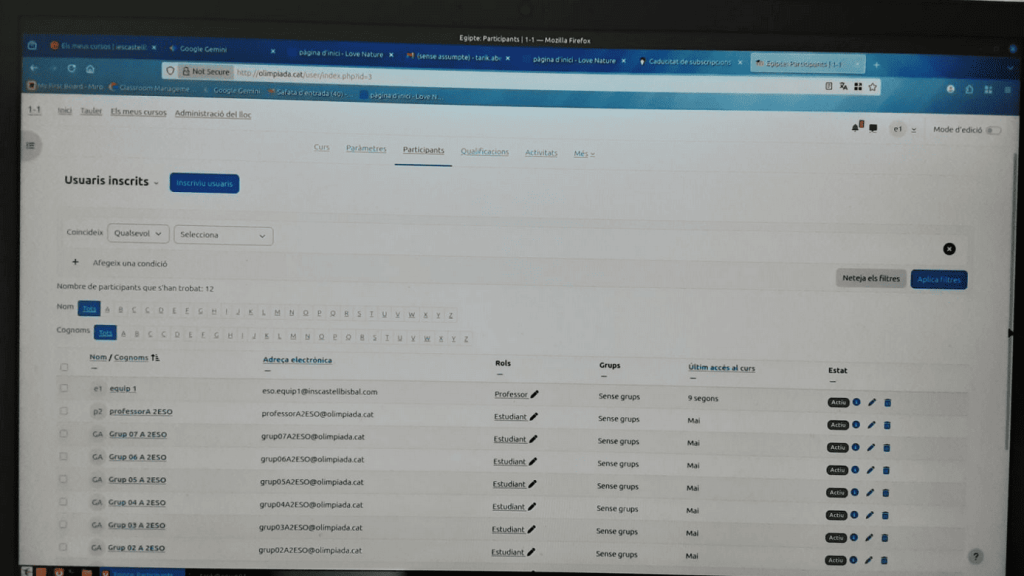 Per configurar les dates de caducitat de les subscripcions, primer hem d’accedir al curs on volem aplicar aquests ajustos i dirigir-nos a la secció de participants.