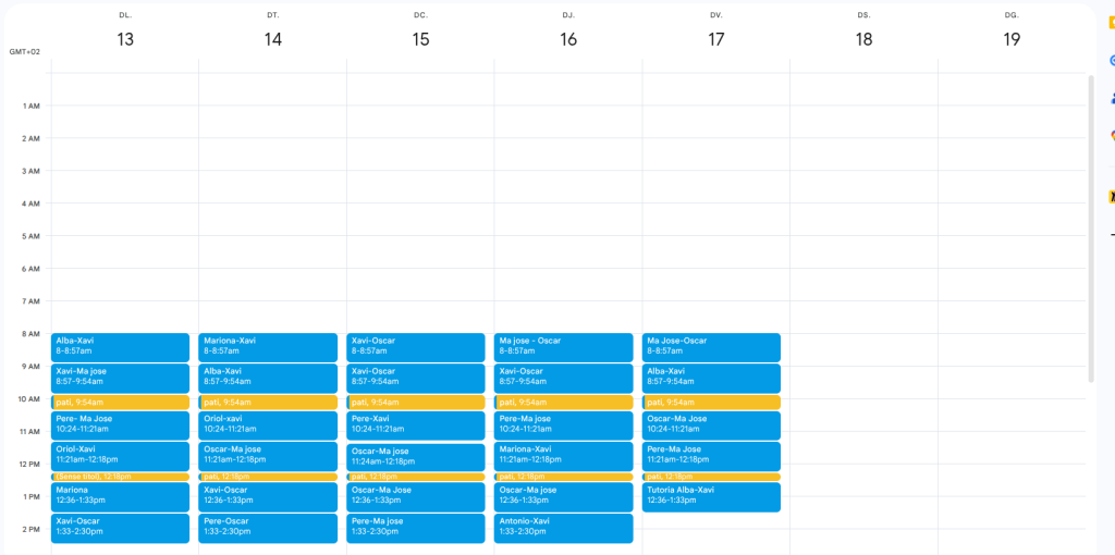 Un cop hagis completat tots els passos, ja tindràs configurat el teu horari acadèmic de manera visual, tal com es mostra a la imatge.