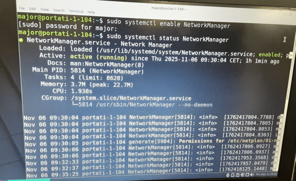 Activació i comprovació del servei NetworkManager.