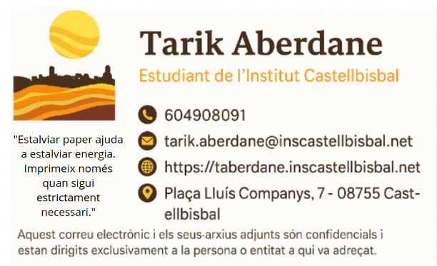 Nom i càrrec: Tarik Aberdane – Estudiant de Sistemes Microinformàtics i Xarxes. Identifica clarament qui ets i el teu àmbit professional.