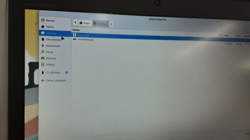 En aquesta finestra, s’ha accedit directament a la carpeta “Desktop” (Escriptori), que és on s’havia desat l’arxiu del logotip corporatiu prèviament. Aquí es selecciona l’arxiu logo.jpeg