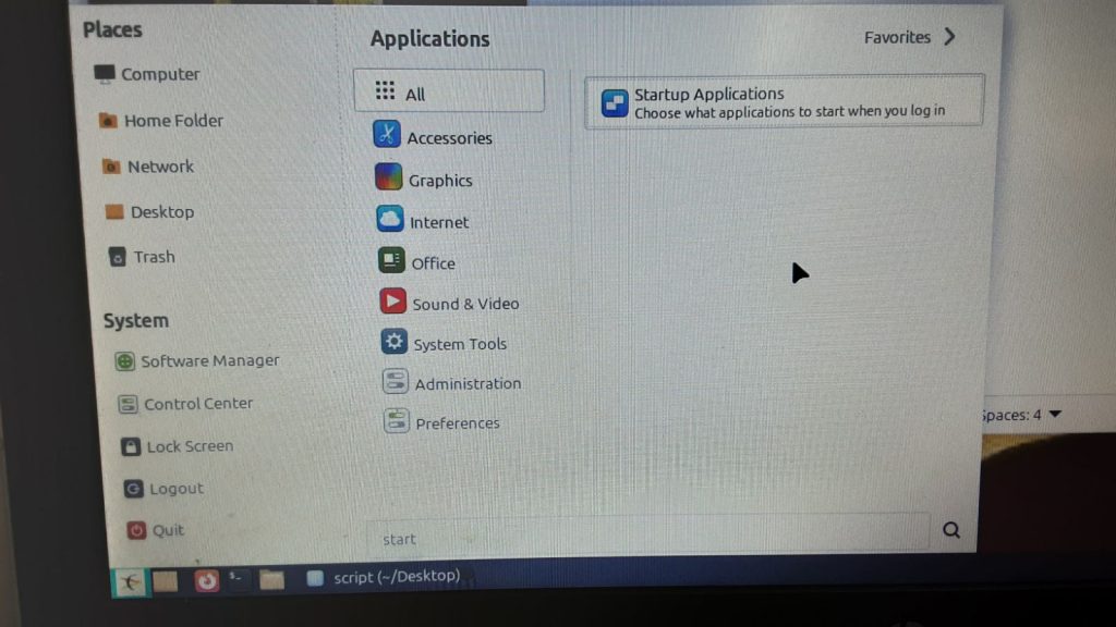 Fem **clic esquerre a la icona d'inici (esquina inferior esquerra)**, busquem i obrim l'aplicació **Startup Applications** (o Aplicacions d'Inici) i afegim el camí complet als dos scripts.