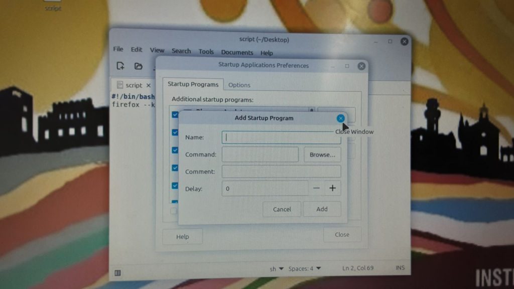 Un cop dins de les “Startup Applications Preferences”, es procedeix a afegir el nou programa d’inici mitjançant el botó corresponent.