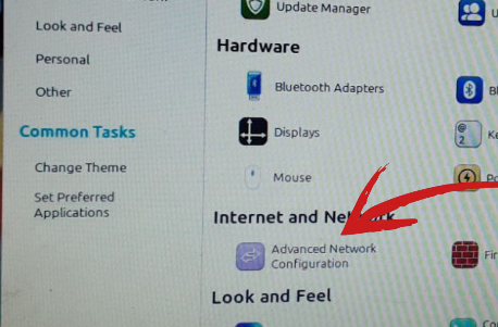 Després d’accedir al “Control Center” (Centre de Control), es va obrir la finestra d’administració. Vaig localitzar la secció “Internet and Network” (Internet i Xarxa) i, dins d’aquesta secció, vaig seleccionar l’opció “Advanced Network Configuration” (Configuració Avançada de Xarxa). Aquesta és l’eina necessària per modificar la configuració d’adreçament IP de l’equip.