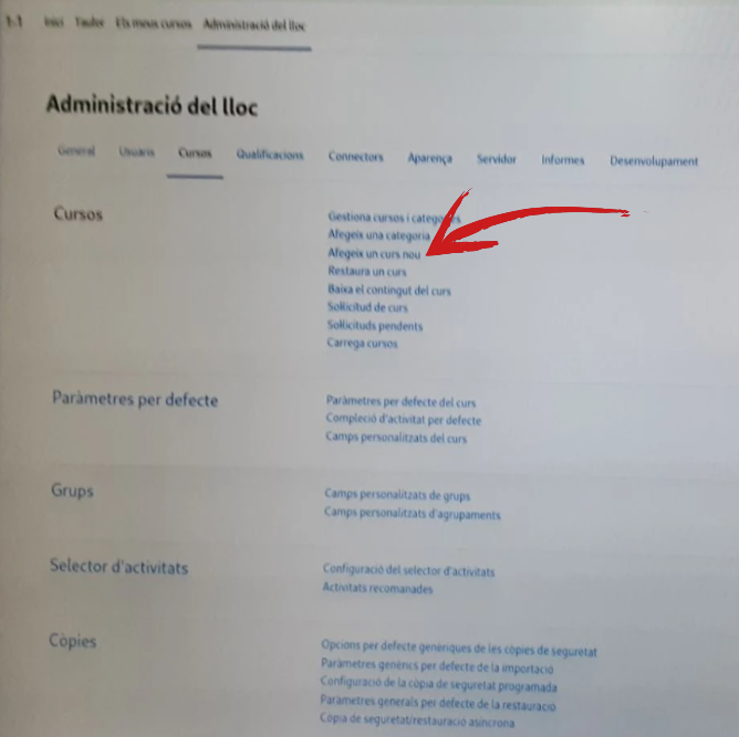 - Importar cursos prèviament creats si escau.
