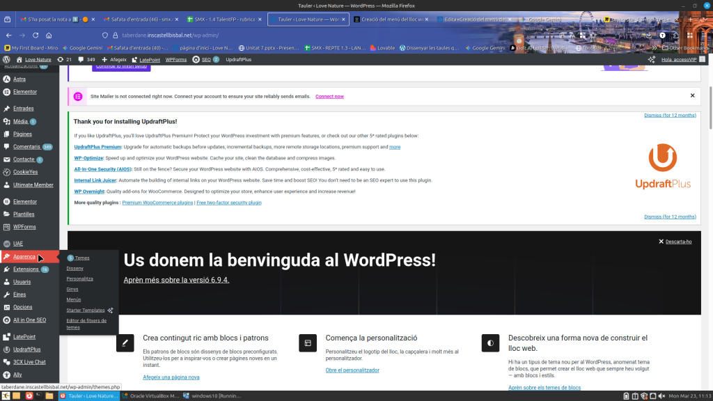 1 – He accedit a l’escriptori de WordPress i he anat a la secció Aparença > Editor > Disseny > Navegació. Aquí és on es gestiona tota l’estructura de navegació del lloc.