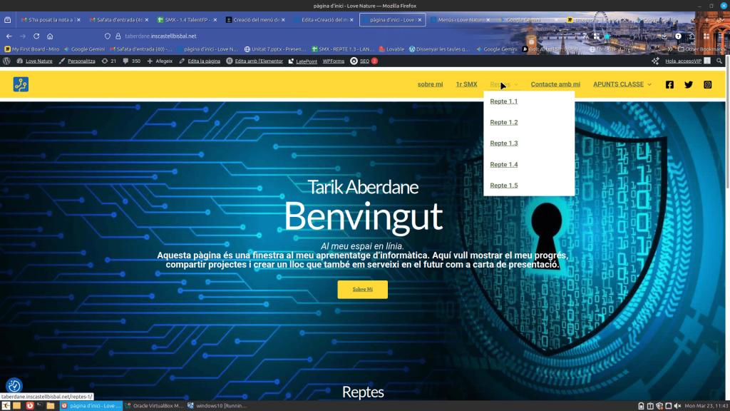 Aquí es veu com queda el menú a la web real. Quan l’usuari passa per sobre de “1r SMX”, es despleguen els 6 reptes de forma ordenada.