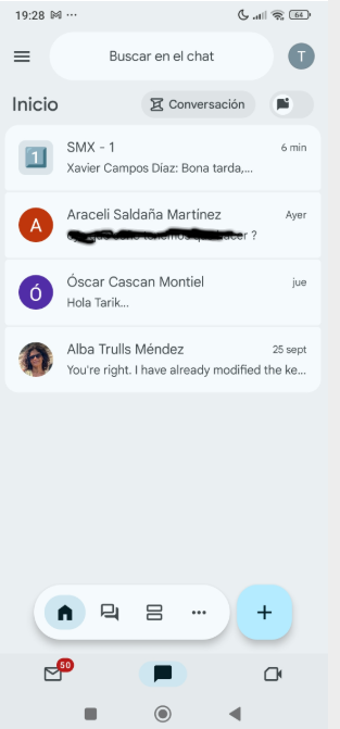 Once inside, I looked for the sync option and enabled it so that both emails and chats would be synchronized. This way, every time I receive an email or chat message, it automatically arrives on my phone.